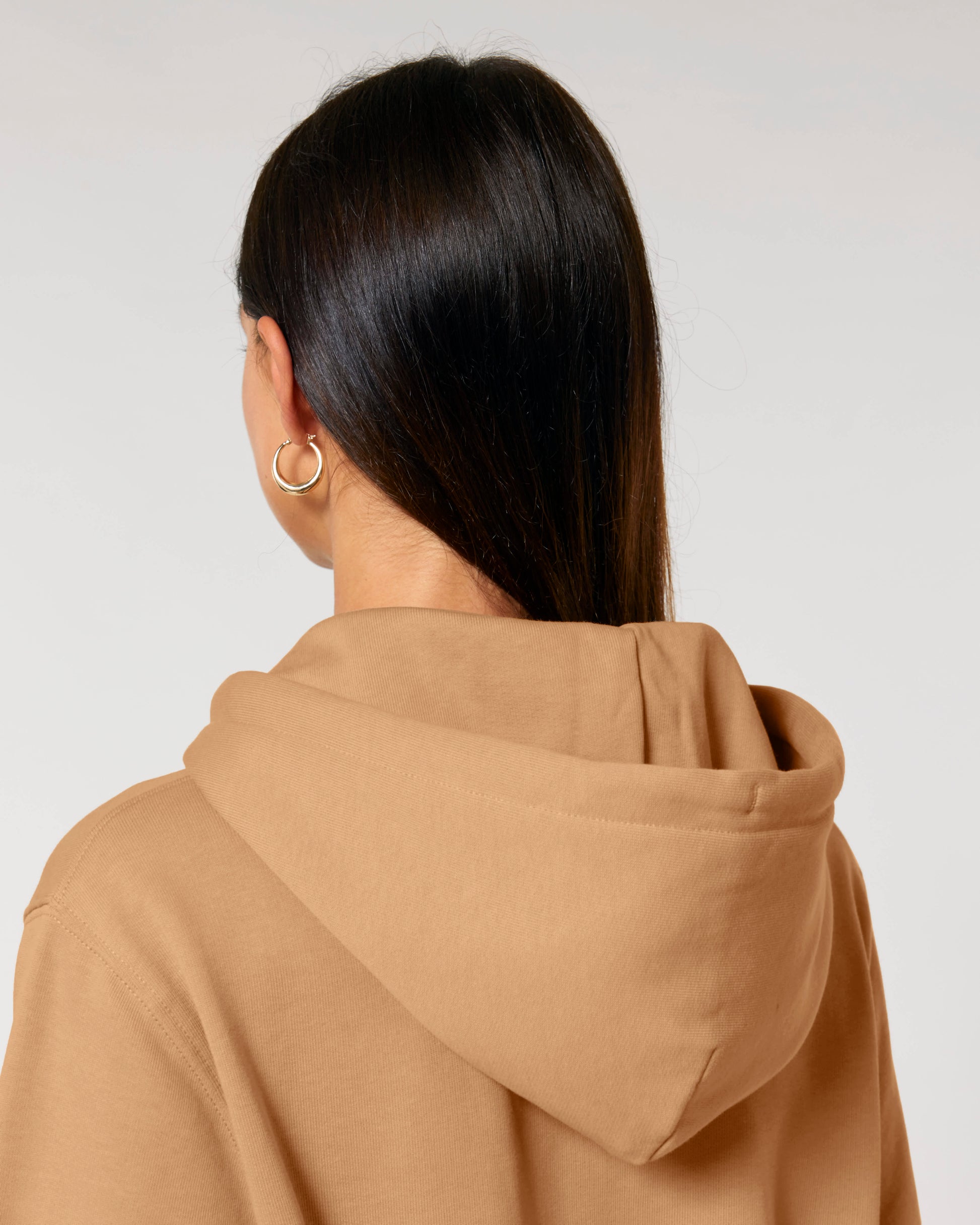 De iconische unisex hoodie combineert stijl, comfort en duurzaamheid in één. Met een medium fit en verkrijgbaar in XXS tot 5XL, is dit sweatshirt geschikt voor iedereen. Het 350 GSM gebrushte organisch katoen voelt zacht en luxe aan, maar blijft stevig en vormvast, zelfs na veelvuldig dragen en wassen. De hoodie is afgewerkt met verfijnde details zoals een dubbel gevoerde capuchon, ronde koorden met metalen uiteinden, herringbone tape aan de binnenzijde en een handige kangoeroezak. Dubbele stiksels en stevige ribboorden zorgen voor een hoogwaardige afwerking en lange levensduur.