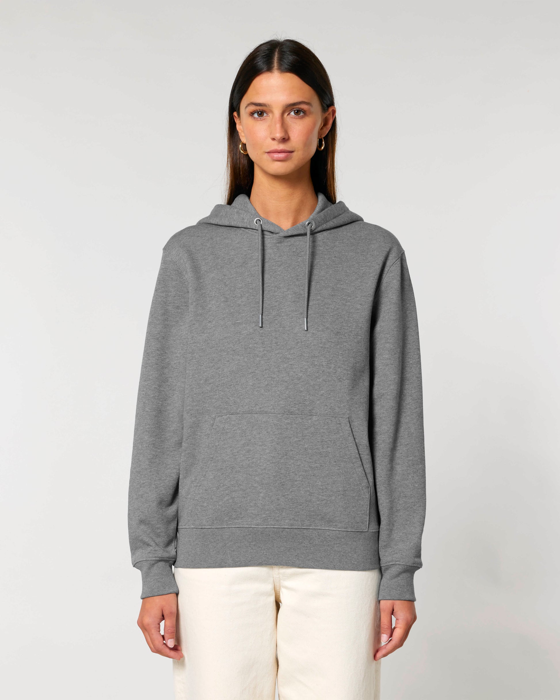 De iconische unisex hoodie combineert stijl, comfort en duurzaamheid in één. Met een medium fit en verkrijgbaar in XXS tot 5XL, is dit sweatshirt geschikt voor iedereen. Het 350 GSM gebrushte organisch katoen voelt zacht en luxe aan, maar blijft stevig en vormvast, zelfs na veelvuldig dragen en wassen. De hoodie is afgewerkt met verfijnde details zoals een dubbel gevoerde capuchon, ronde koorden met metalen uiteinden, herringbone tape aan de binnenzijde en een handige kangoeroezak. Dubbele stiksels en stevige ribboorden zorgen voor een hoogwaardige afwerking en lange levensduur.