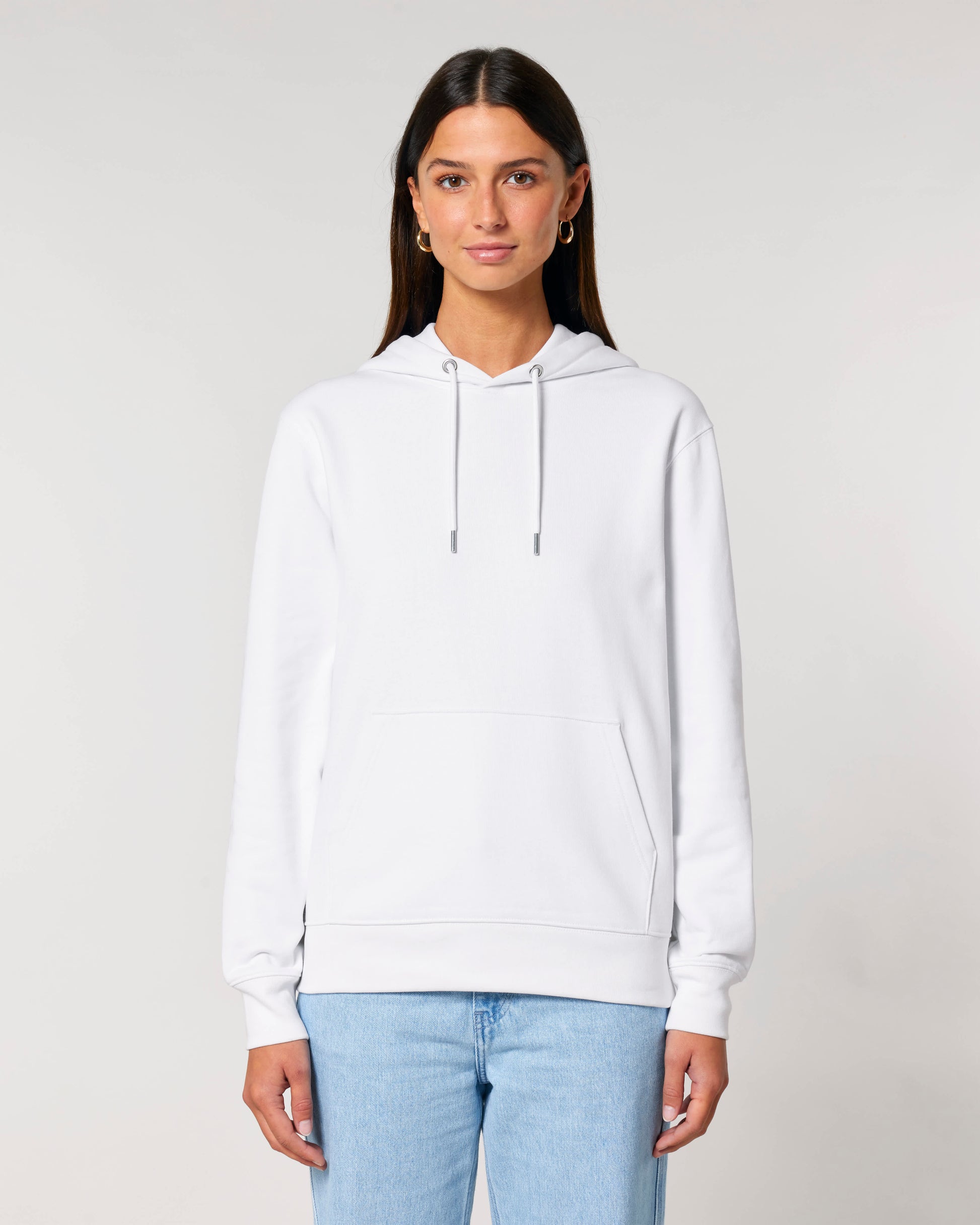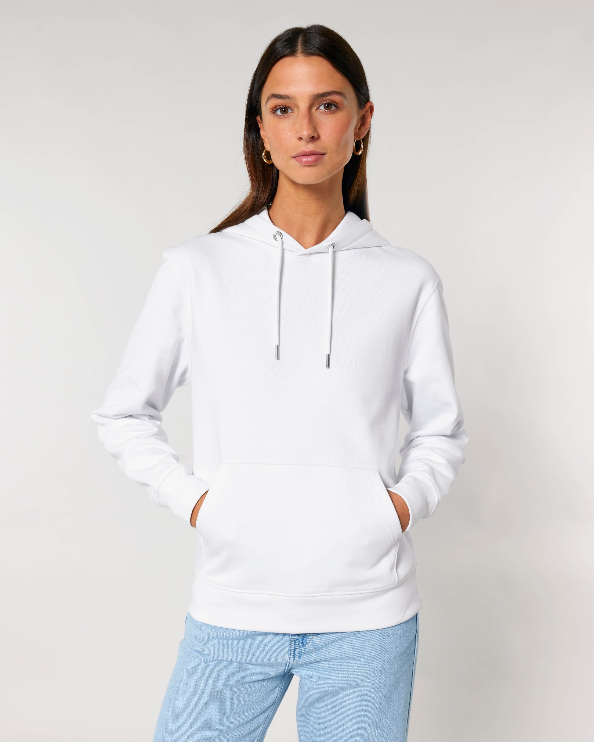 De iconische unisex hoodie combineert stijl, comfort en duurzaamheid in één. Met een medium fit en verkrijgbaar in XXS tot 5XL, is dit sweatshirt geschikt voor iedereen. Het 350 GSM gebrushte organisch katoen voelt zacht en luxe aan, maar blijft stevig en vormvast, zelfs na veelvuldig dragen en wassen. De hoodie is afgewerkt met verfijnde details zoals een dubbel gevoerde capuchon, ronde koorden met metalen uiteinden, herringbone tape aan de binnenzijde en een handige kangoeroezak. Dubbele stiksels en stevige ribboorden zorgen voor een hoogwaardige afwerking en lange levensduur.