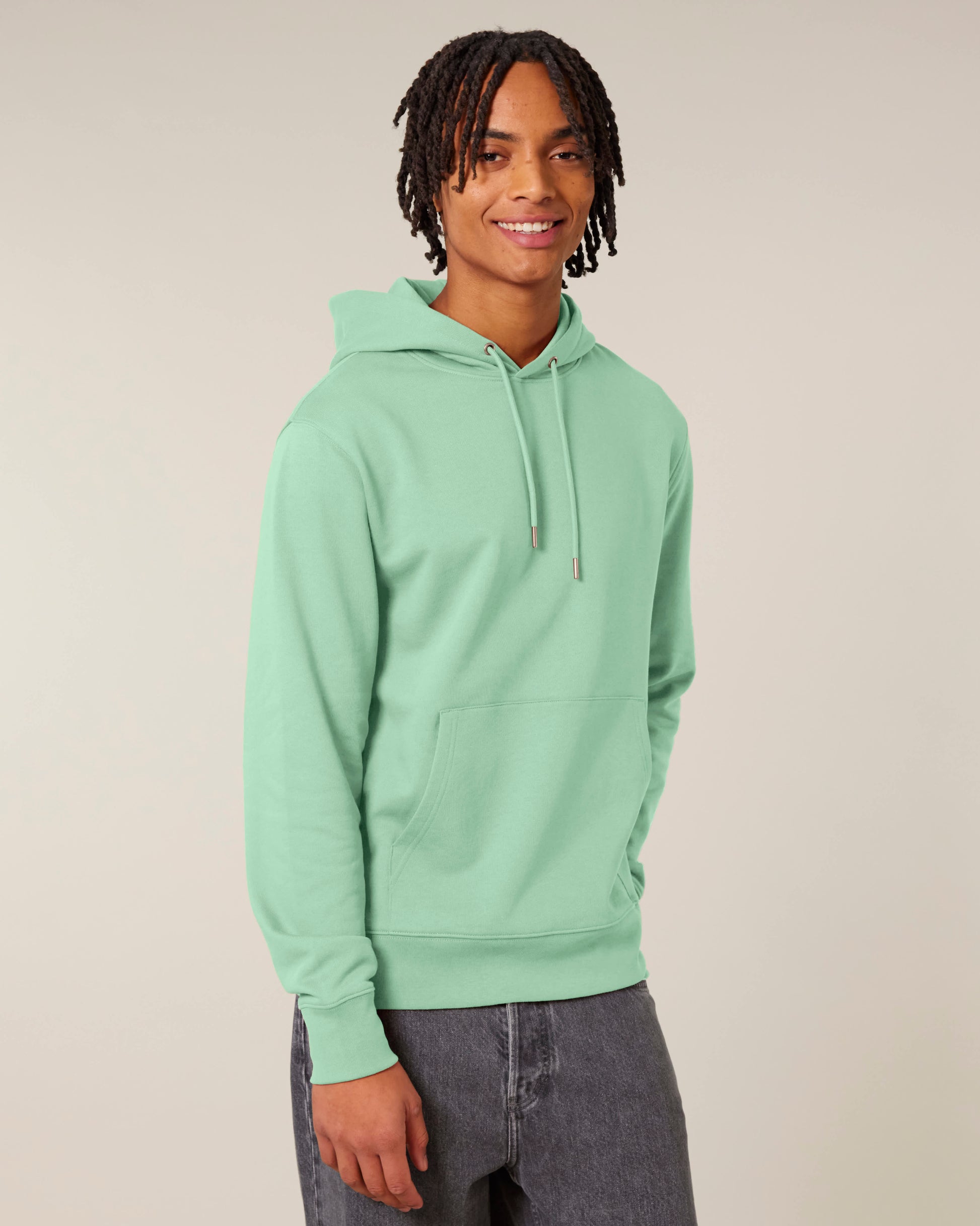 De iconische unisex hoodie combineert stijl, comfort en duurzaamheid in één. Met een medium fit en verkrijgbaar in XXS tot 5XL, is dit sweatshirt geschikt voor iedereen. Het 350 GSM gebrushte organisch katoen voelt zacht en luxe aan, maar blijft stevig en vormvast, zelfs na veelvuldig dragen en wassen. De hoodie is afgewerkt met verfijnde details zoals een dubbel gevoerde capuchon, ronde koorden met metalen uiteinden, herringbone tape aan de binnenzijde en een handige kangoeroezak. Dubbele stiksels en stevige ribboorden zorgen voor een hoogwaardige afwerking en lange levensduur.