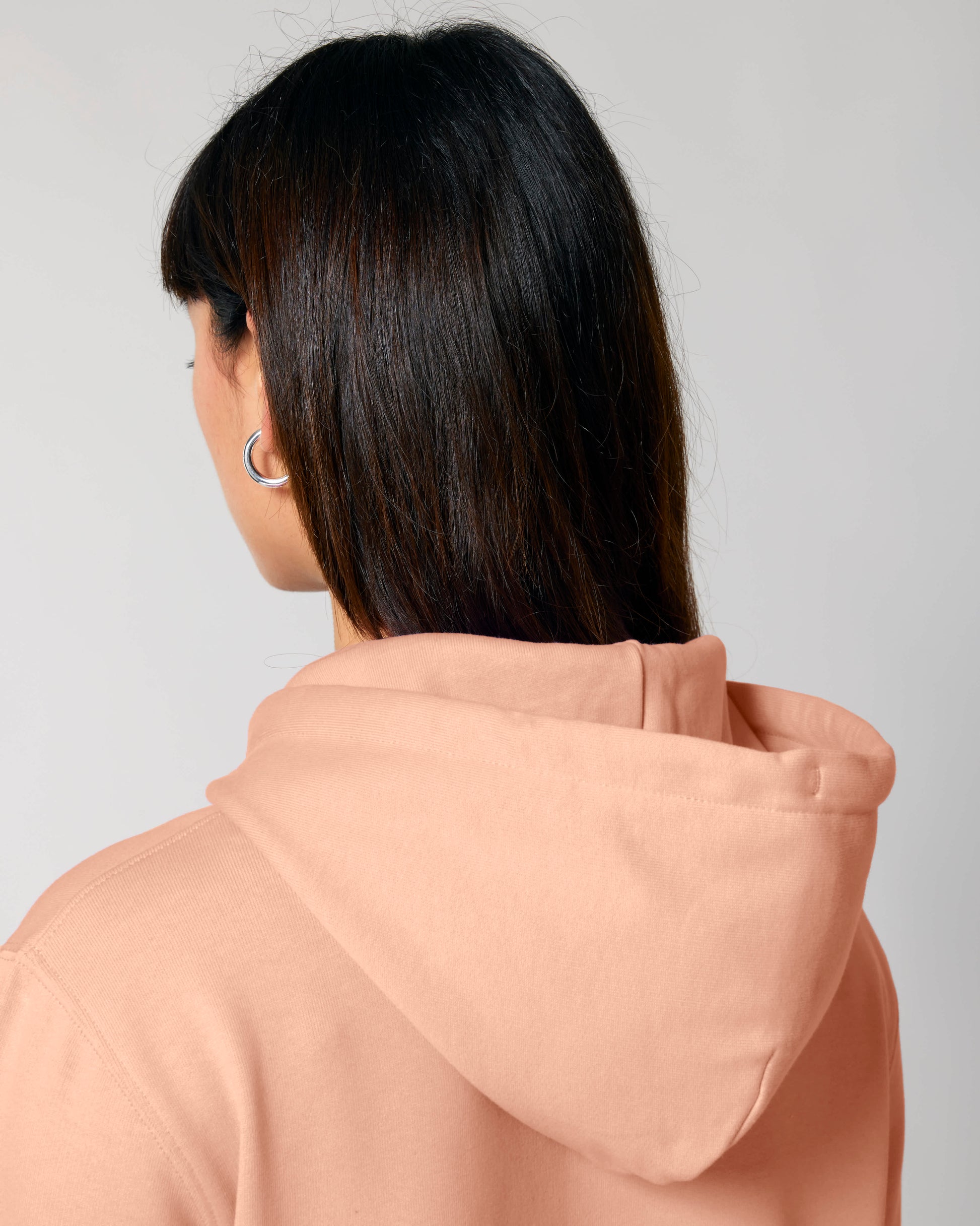 De iconische unisex hoodie combineert stijl, comfort en duurzaamheid in één. Met een medium fit en verkrijgbaar in XXS tot 5XL, is dit sweatshirt geschikt voor iedereen. Het 350 GSM gebrushte organisch katoen voelt zacht en luxe aan, maar blijft stevig en vormvast, zelfs na veelvuldig dragen en wassen. De hoodie is afgewerkt met verfijnde details zoals een dubbel gevoerde capuchon, ronde koorden met metalen uiteinden, herringbone tape aan de binnenzijde en een handige kangoeroezak. Dubbele stiksels en stevige ribboorden zorgen voor een hoogwaardige afwerking en lange levensduur.