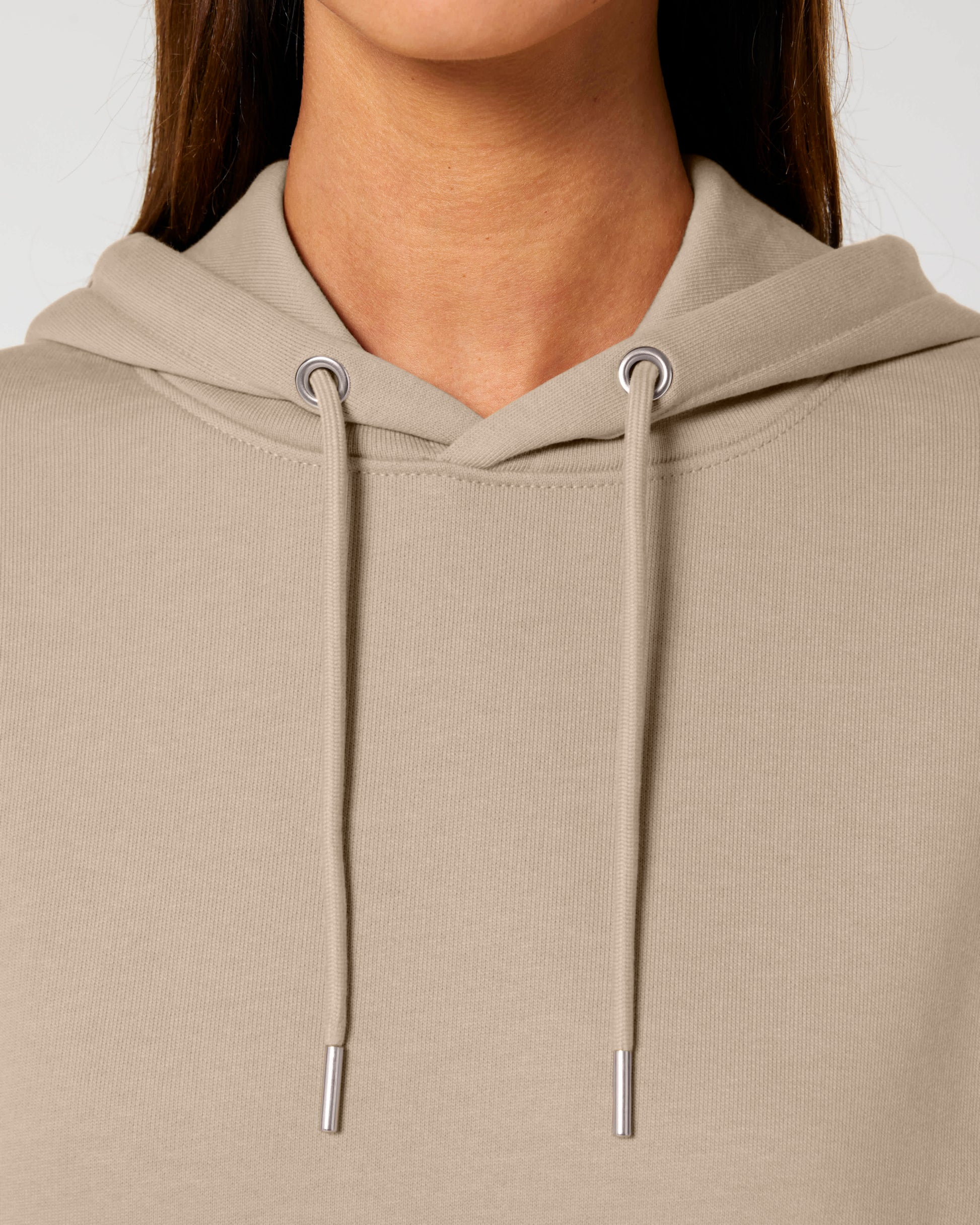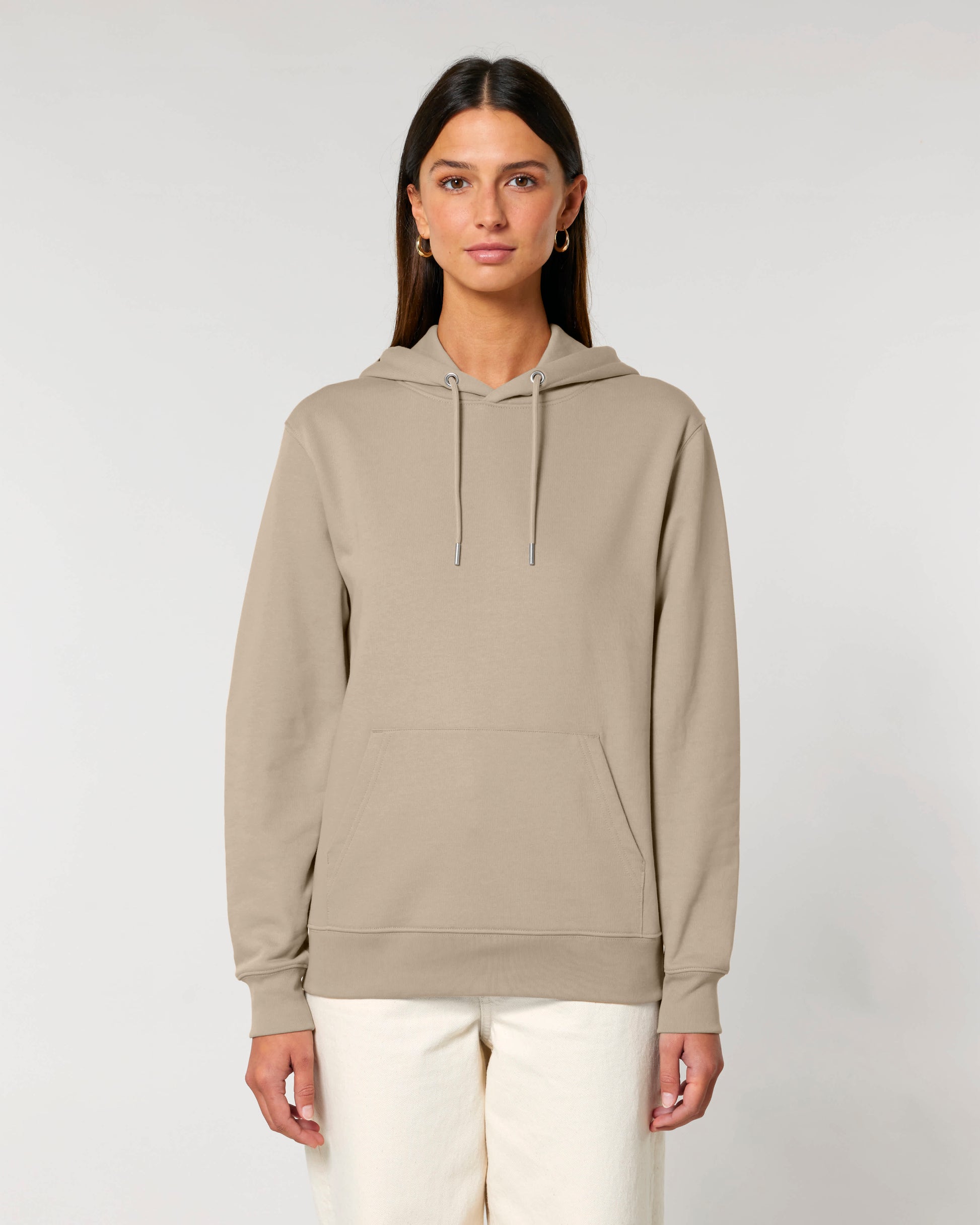De iconische unisex hoodie combineert stijl, comfort en duurzaamheid in één. Met een medium fit en verkrijgbaar in XXS tot 5XL, is dit sweatshirt geschikt voor iedereen. Het 350 GSM gebrushte organisch katoen voelt zacht en luxe aan, maar blijft stevig en vormvast, zelfs na veelvuldig dragen en wassen. De hoodie is afgewerkt met verfijnde details zoals een dubbel gevoerde capuchon, ronde koorden met metalen uiteinden, herringbone tape aan de binnenzijde en een handige kangoeroezak. Dubbele stiksels en stevige ribboorden zorgen voor een hoogwaardige afwerking en lange levensduur.