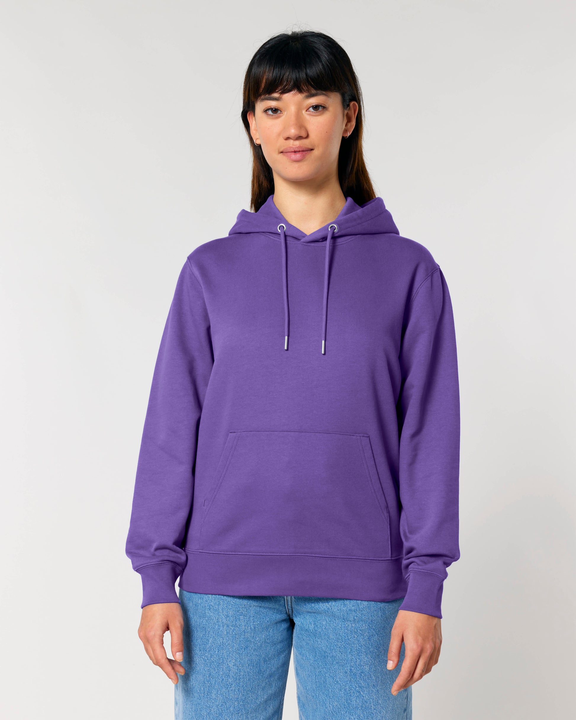 De iconische unisex hoodie combineert stijl, comfort en duurzaamheid in één. Met een medium fit en verkrijgbaar in XXS tot 5XL, is dit sweatshirt geschikt voor iedereen. Het 350 GSM gebrushte organisch katoen voelt zacht en luxe aan, maar blijft stevig en vormvast, zelfs na veelvuldig dragen en wassen. De hoodie is afgewerkt met verfijnde details zoals een dubbel gevoerde capuchon, ronde koorden met metalen uiteinden, herringbone tape aan de binnenzijde en een handige kangoeroezak. Dubbele stiksels en stevige ribboorden zorgen voor een hoogwaardige afwerking en lange levensduur.