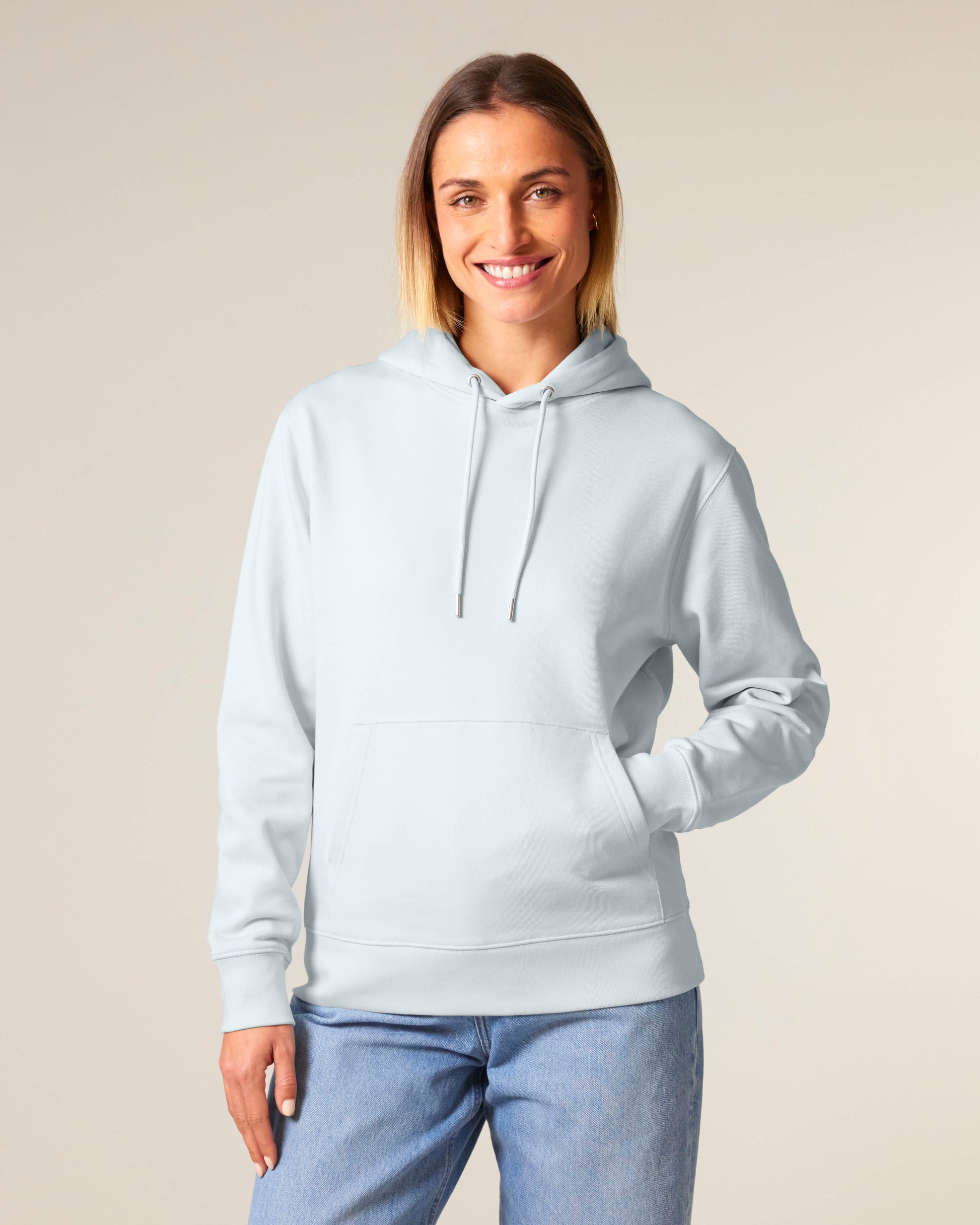 De iconische unisex hoodie combineert stijl, comfort en duurzaamheid in één. Met een medium fit en verkrijgbaar in XXS tot 5XL, is dit sweatshirt geschikt voor iedereen. Het 350 GSM gebrushte organisch katoen voelt zacht en luxe aan, maar blijft stevig en vormvast, zelfs na veelvuldig dragen en wassen. De hoodie is afgewerkt met verfijnde details zoals een dubbel gevoerde capuchon, ronde koorden met metalen uiteinden, herringbone tape aan de binnenzijde en een handige kangoeroezak. Dubbele stiksels en stevige ribboorden zorgen voor een hoogwaardige afwerking en lange levensduur.