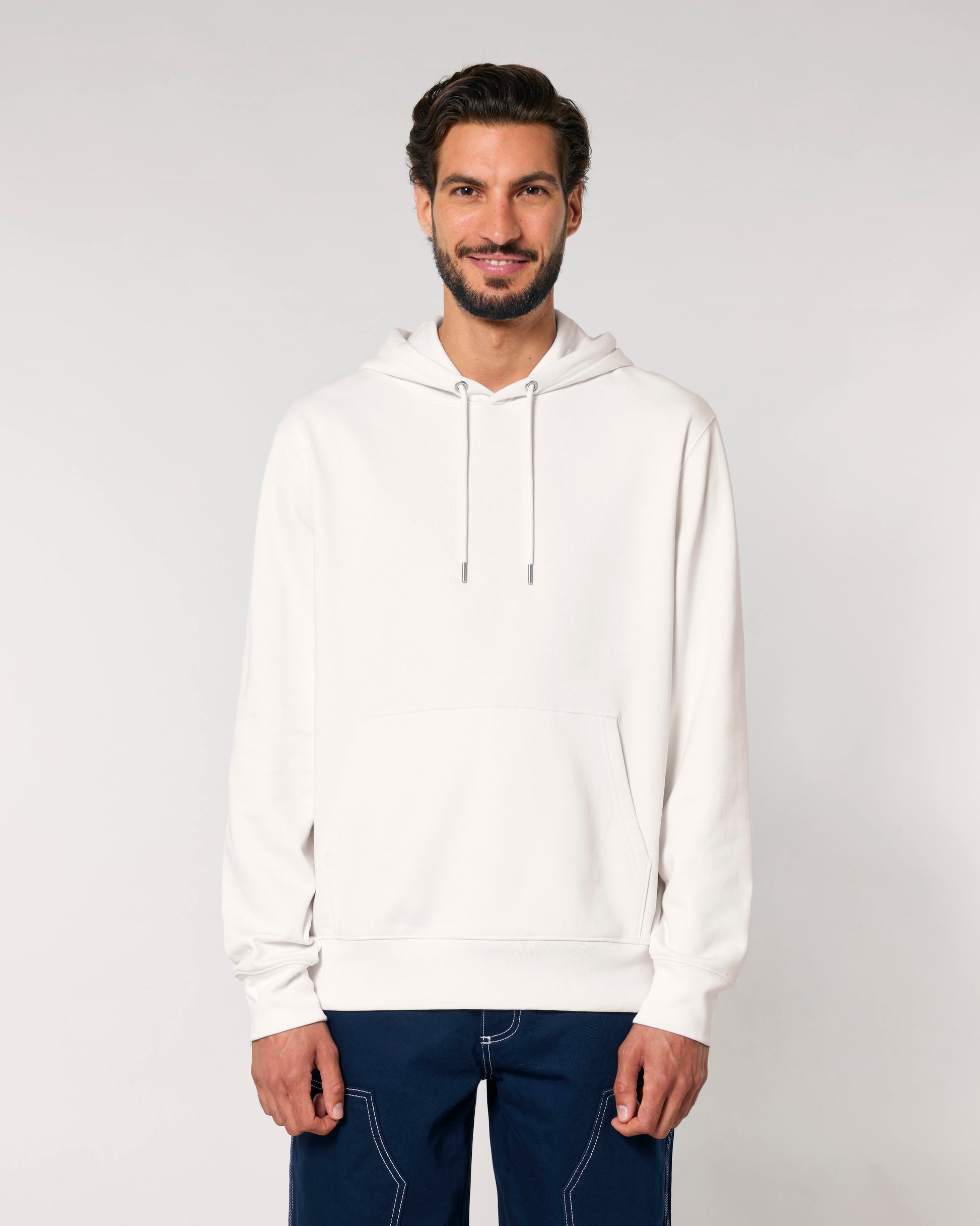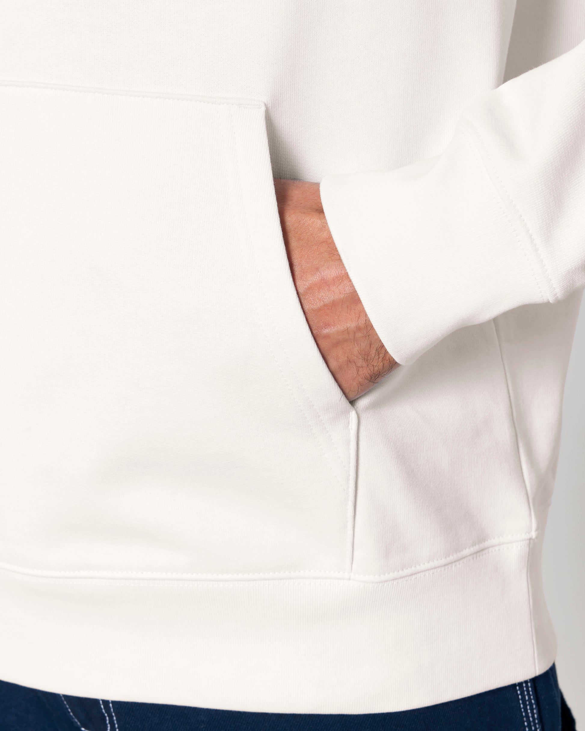 De iconische unisex hoodie combineert stijl, comfort en duurzaamheid in één. Met een medium fit en verkrijgbaar in XXS tot 5XL, is dit sweatshirt geschikt voor iedereen. Het 350 GSM gebrushte organisch katoen voelt zacht en luxe aan, maar blijft stevig en vormvast, zelfs na veelvuldig dragen en wassen. De hoodie is afgewerkt met verfijnde details zoals een dubbel gevoerde capuchon, ronde koorden met metalen uiteinden, herringbone tape aan de binnenzijde en een handige kangoeroezak. Dubbele stiksels en stevige ribboorden zorgen voor een hoogwaardige afwerking en lange levensduur.