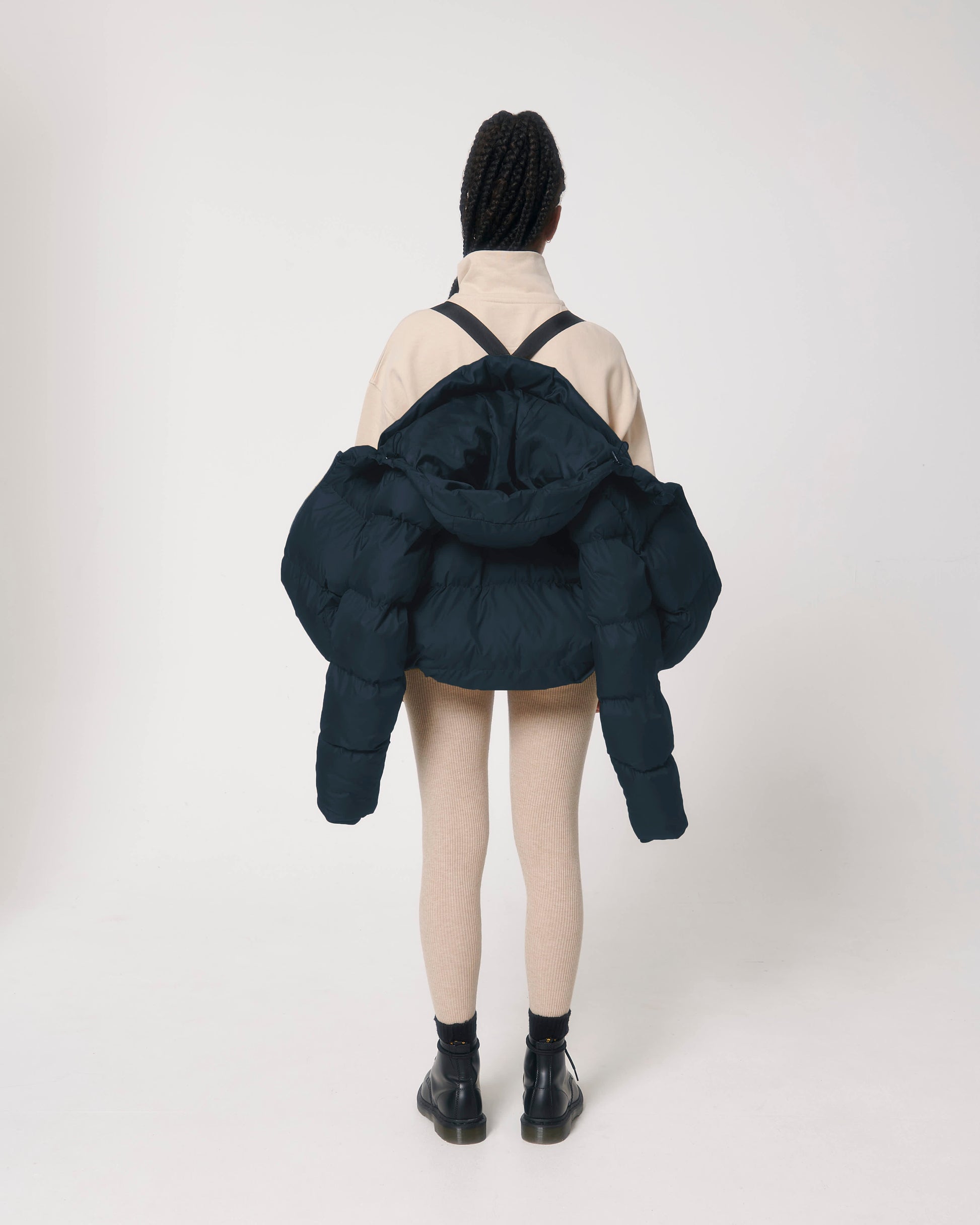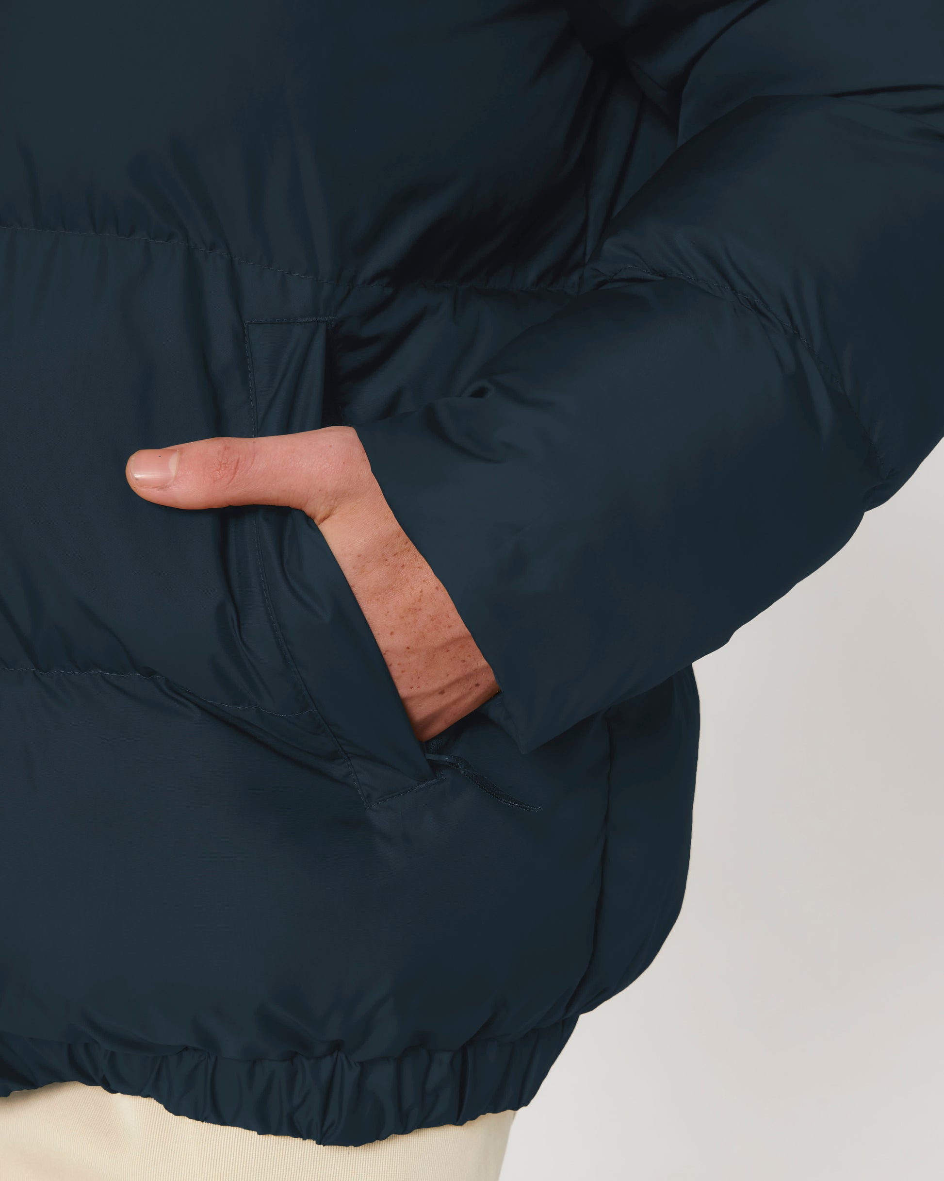 Deze unisex puffer jas biedt de perfecte balans tussen warmte, comfort en duurzaamheid. Het doorgestikte design met gerecyclede vulling houdt je warm, terwijl de fluorvrije, waterafstotende afwerking bescherming biedt tegen lichte regen en wind. De jas is voorzien van een gevoerde capuchon met verstelbare stoppers, een stevige rits met kinbescherming en praktische details zoals ritszakken, een binnenzak en slimme schouderstraps waarmee je de jas ook handsfree kunt dragen. Een eigentijdse winter essential die gemaakt is voor dagelijks gebruik.