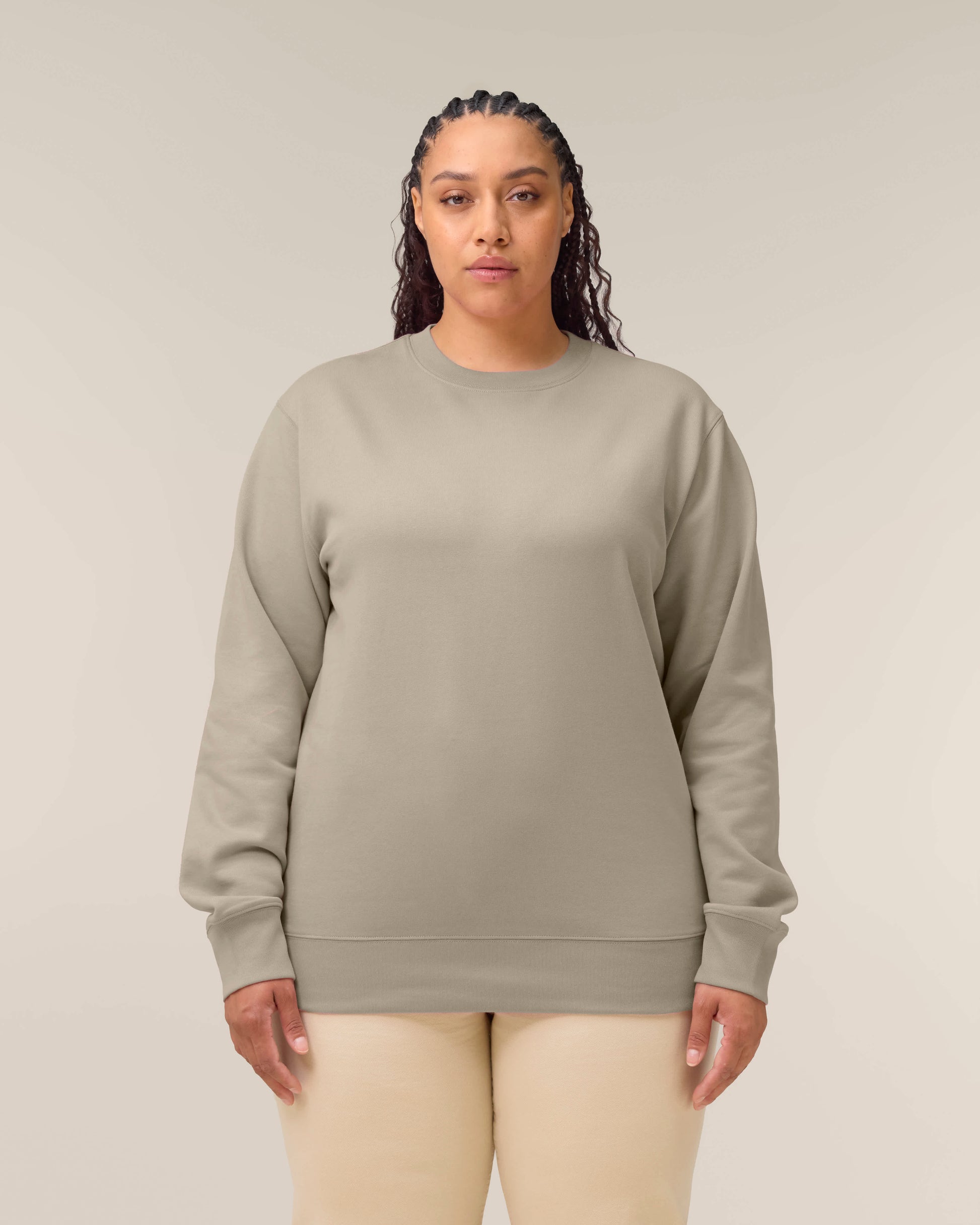 Deze iconische unisex sweater combineert een tijdloos design met hoog draagcomfort en duurzame kwaliteit. Dankzij de medium fit en maten van XXS tot 5XL is dit sweatshirt geschikt voor iedereen. Het 350 GSM gebrushte, organische katoen voelt stevig én zacht aan en blijft langdurig mooi. De sweater is verfijnd afgewerkt met een ronde hals met ribboord, dubbele stiksels, herringbone tape in de nek en een nette pasvorm die stijlvol oogt in elke situatie.