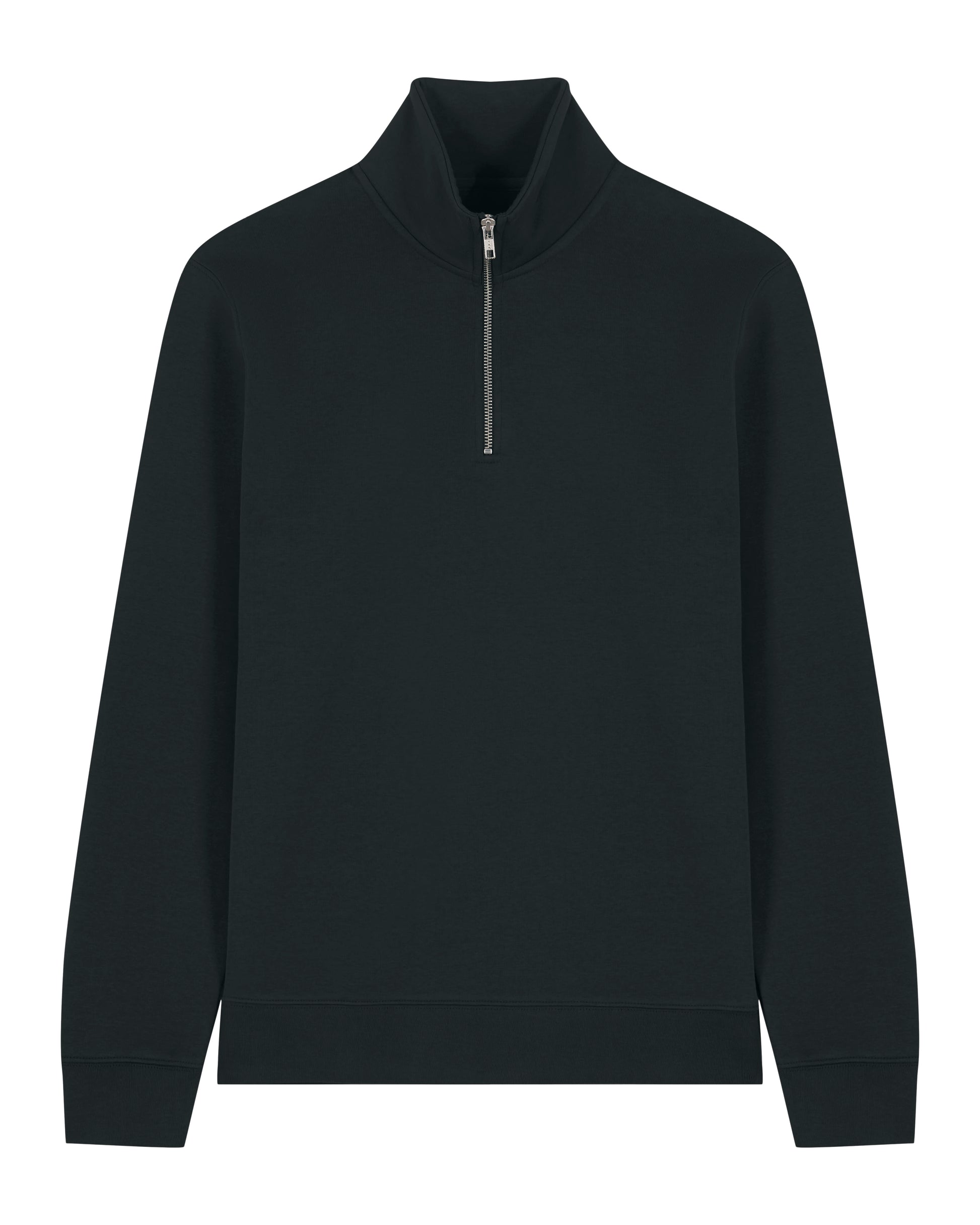 Deze unisex zip sweater is een comfortabele klassieker met een moderne twist. De kwart-rits aan de voorkant geeft een sportieve uitstraling en maakt het vest veelzijdig in gebruik: draag het open voor een casual look of gesloten voor extra warmte. Gemaakt van 100% organisch katoen in stevige French Terry kwaliteit, voelt de sweater duurzaam en authentiek aan. Het design wordt versterkt door de nette afwerking met herringbone tape en dubbele stiksels. Een veelzijdig kledingstuk dat stijl en comfort moeiteloos combineert.