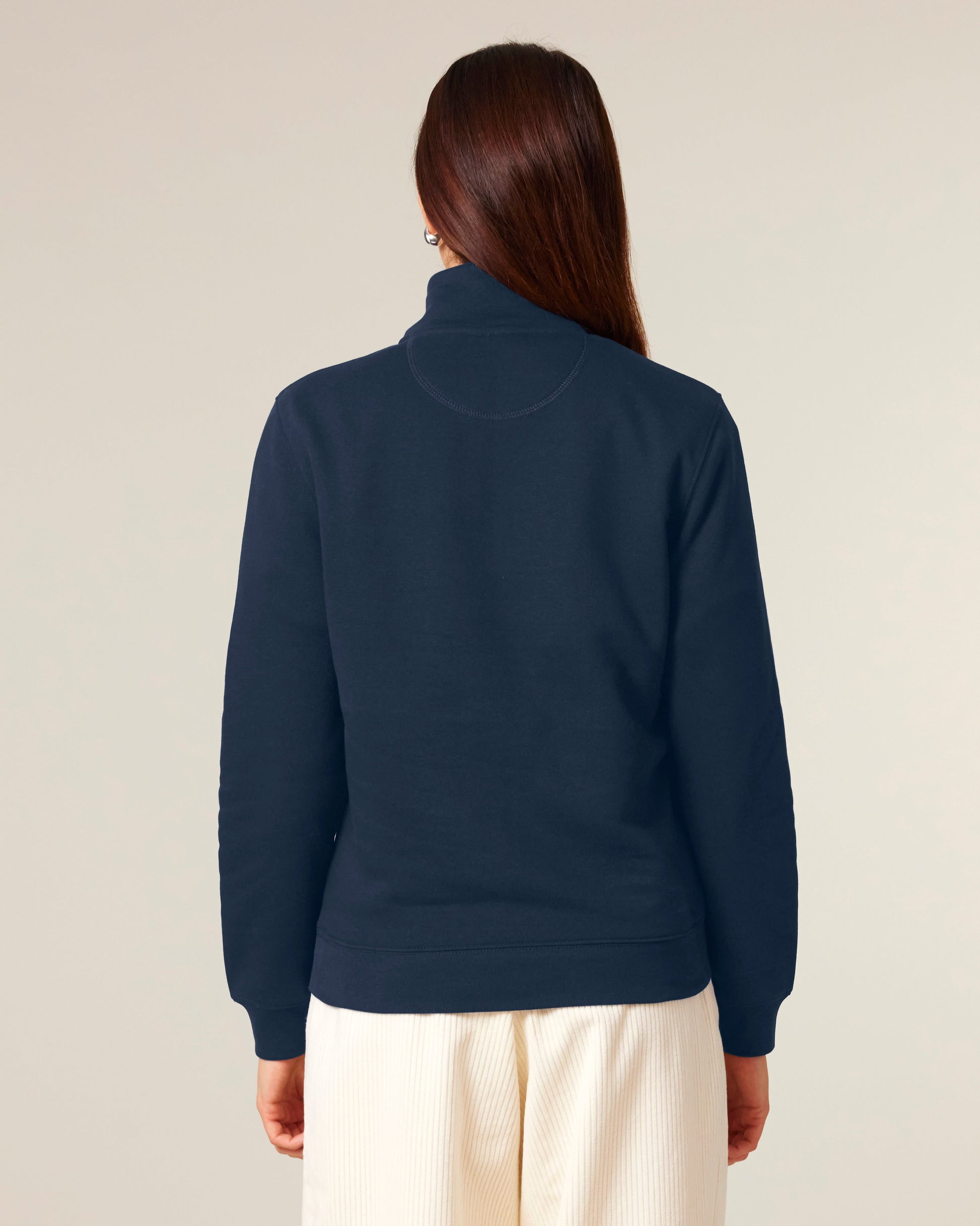 Deze unisex zip sweater is een comfortabele klassieker met een moderne twist. De kwart-rits aan de voorkant geeft een sportieve uitstraling en maakt het vest veelzijdig in gebruik: draag het open voor een casual look of gesloten voor extra warmte. Gemaakt van 100% organisch katoen in stevige French Terry kwaliteit, voelt de sweater duurzaam en authentiek aan. Het design wordt versterkt door de nette afwerking met herringbone tape en dubbele stiksels. Een veelzijdig kledingstuk dat stijl en comfort moeiteloos combineert.